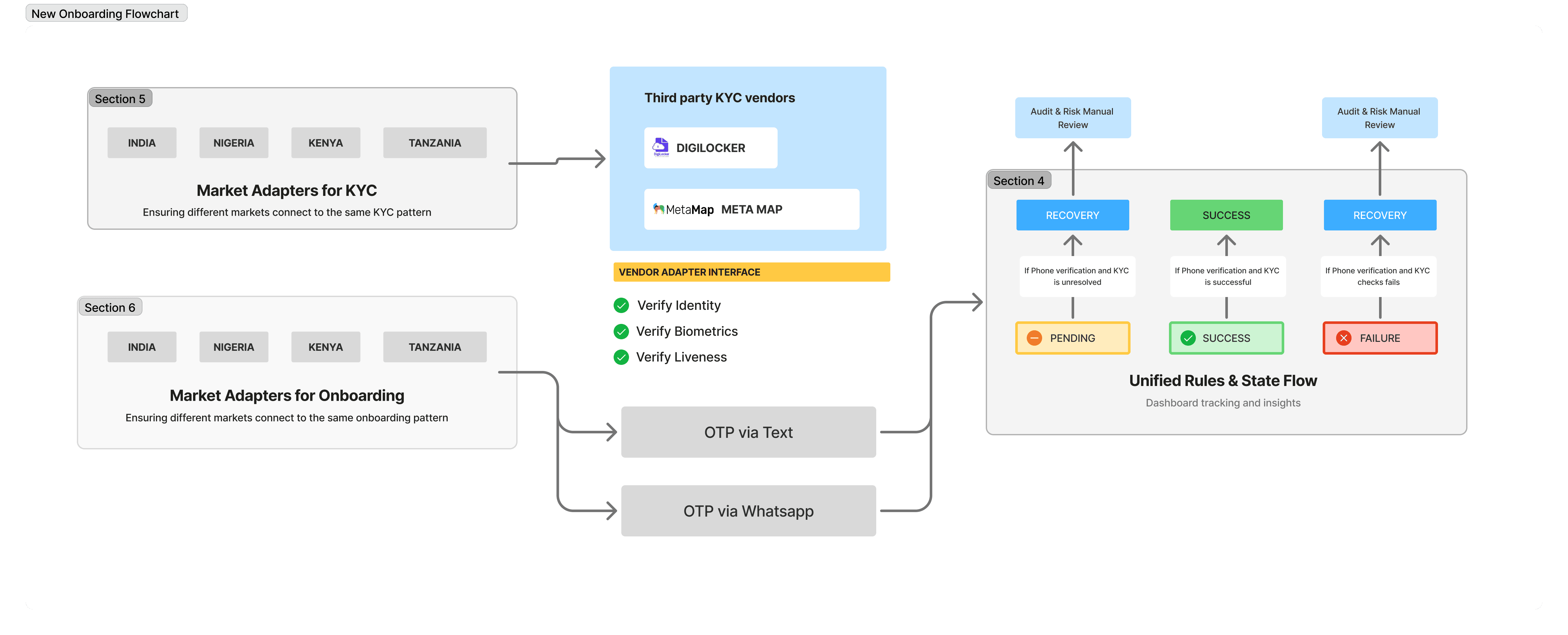 Instead of redesigning individual screens, I reframed onboarding and KYC as a state-driven system with explicit success, pending, failure, and recovery paths. This abstraction allowed reuse across markets while accommodating regulatory differences.