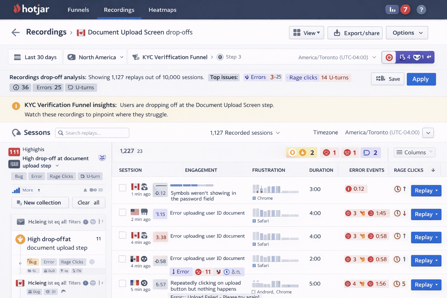 I partnered with Product to analyze session replays and funnel data to identify the highest-impact failure points. These insights directly informed recovery flows and sequencing decisions.